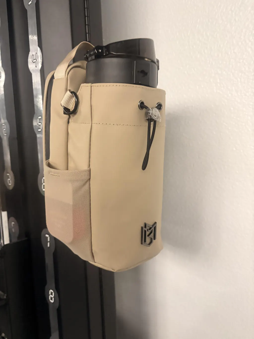 Love this bag so much! The magnet is strong and i can have my water within reach and off the floor at all times at the gym. The only thing i wish was different was that the cream color bag and cream color cup are not the same hue- i wish they matched.