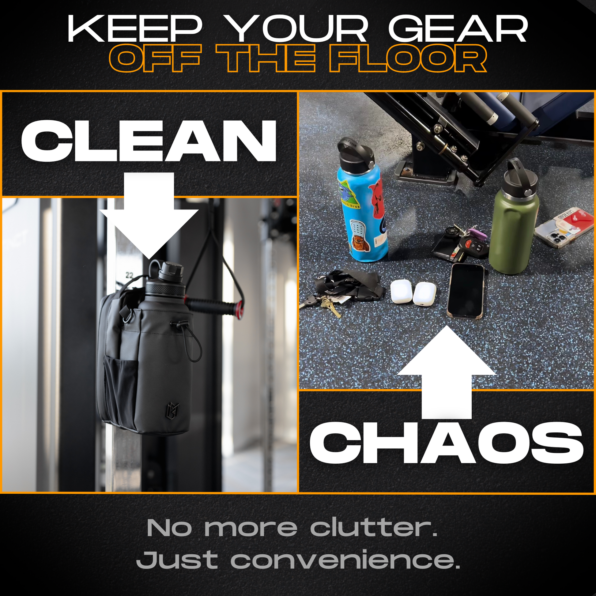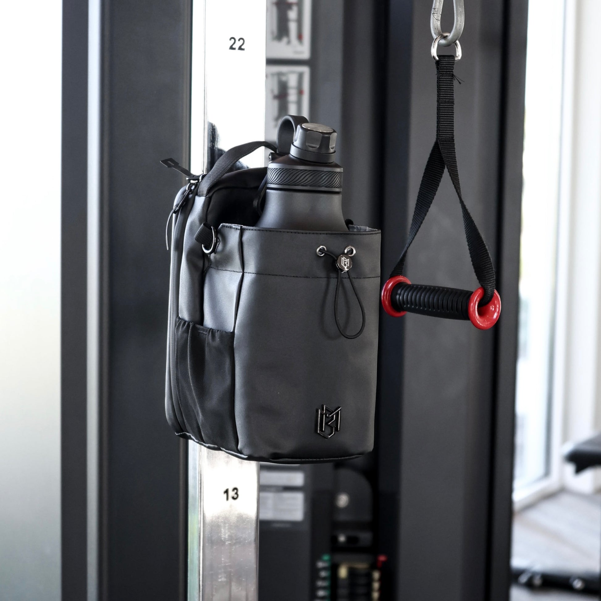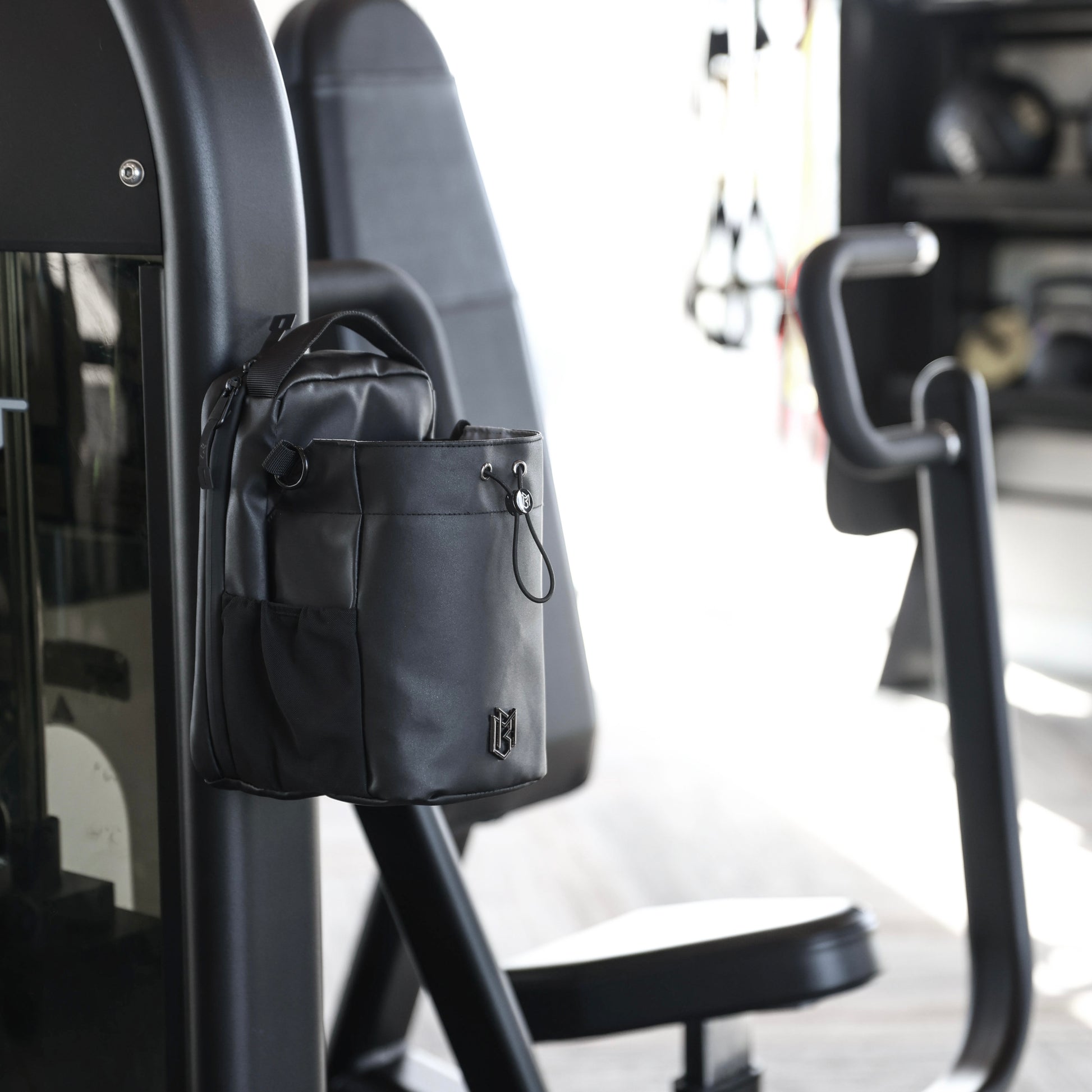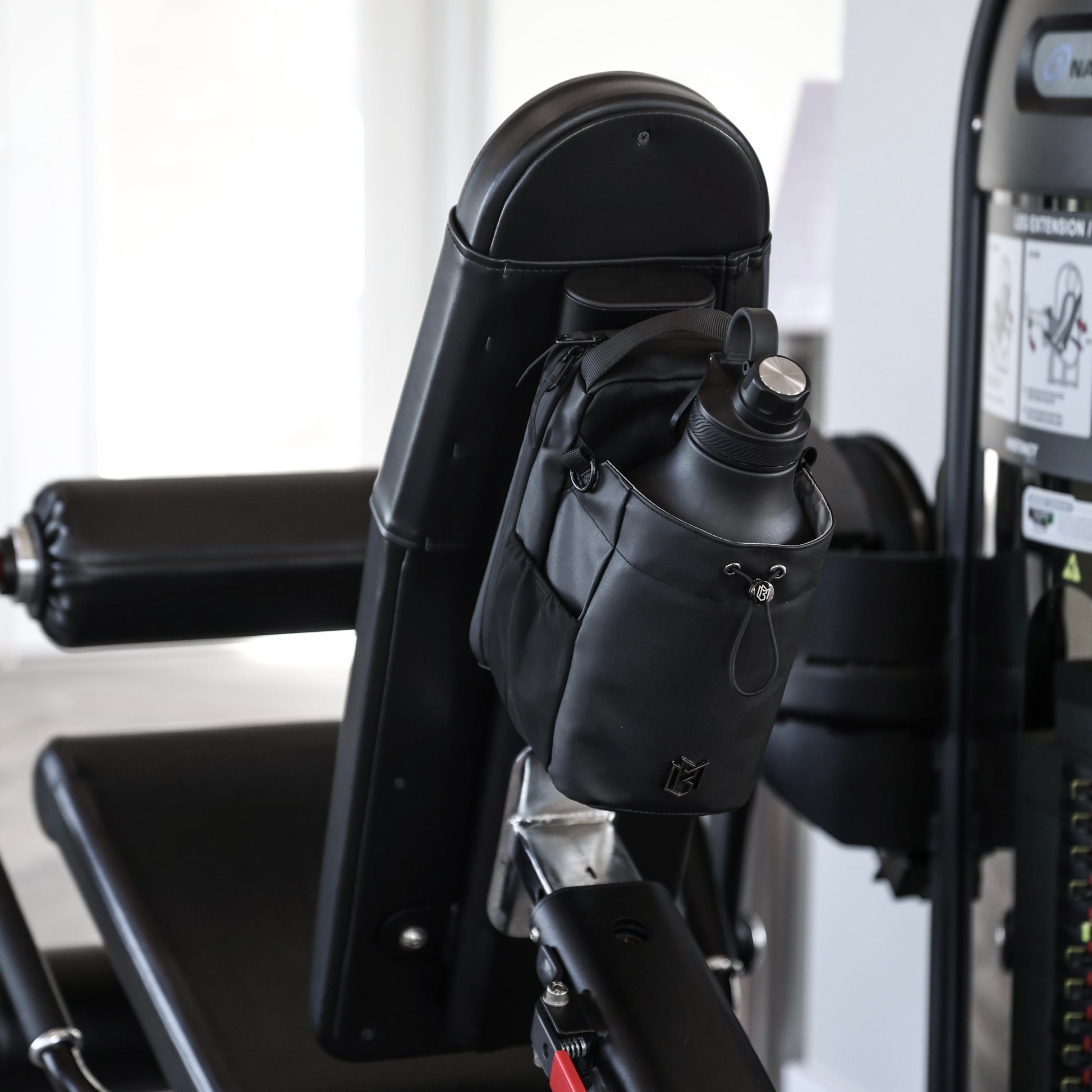 The Magnetic Bottle Bag is a uniquely designed bag that uses an integrated magnetic backing to attach to magnetized surfaces such as fitness equipment. It's perfect for keeping your essentials and bottle secure and easily accessible during workouts or on the go.