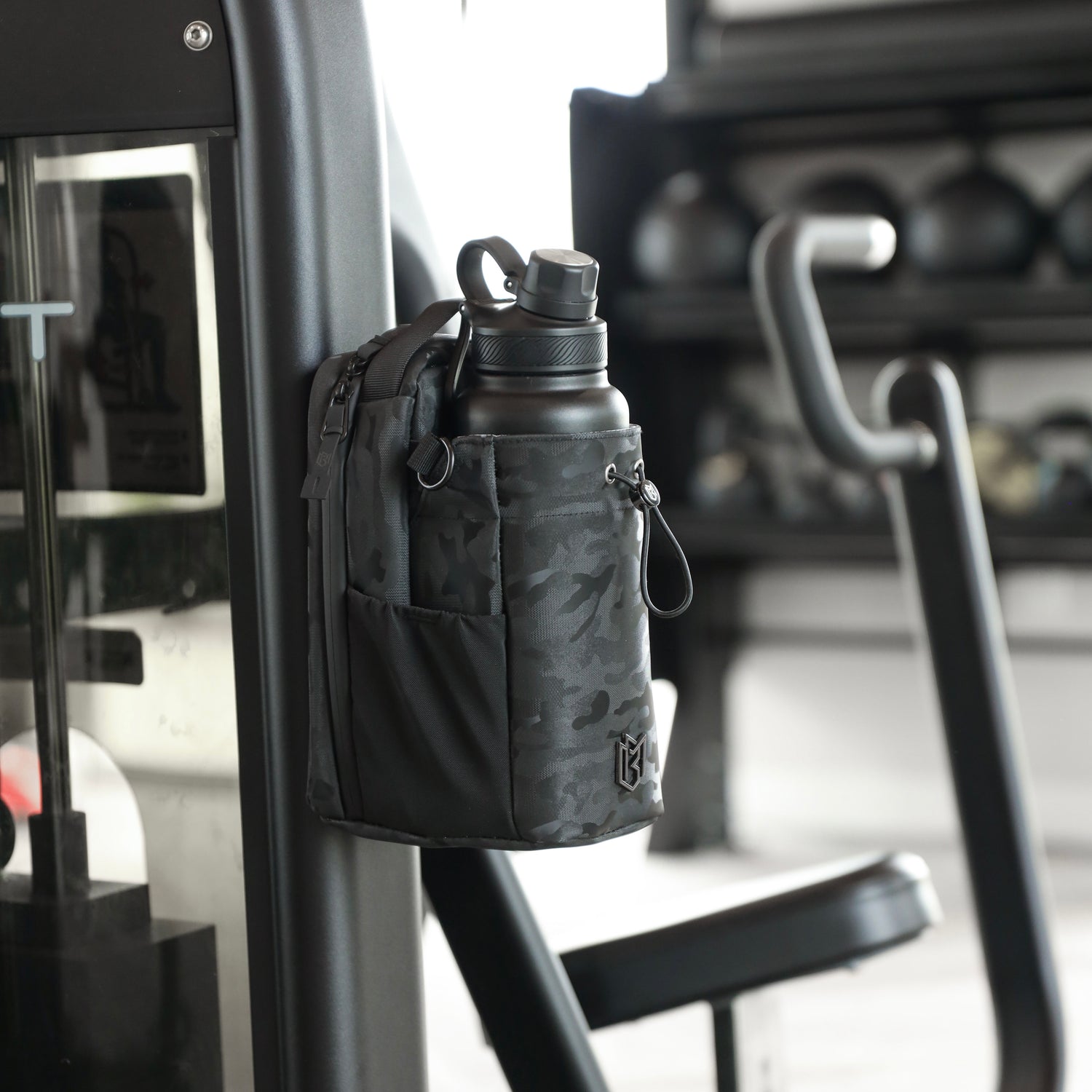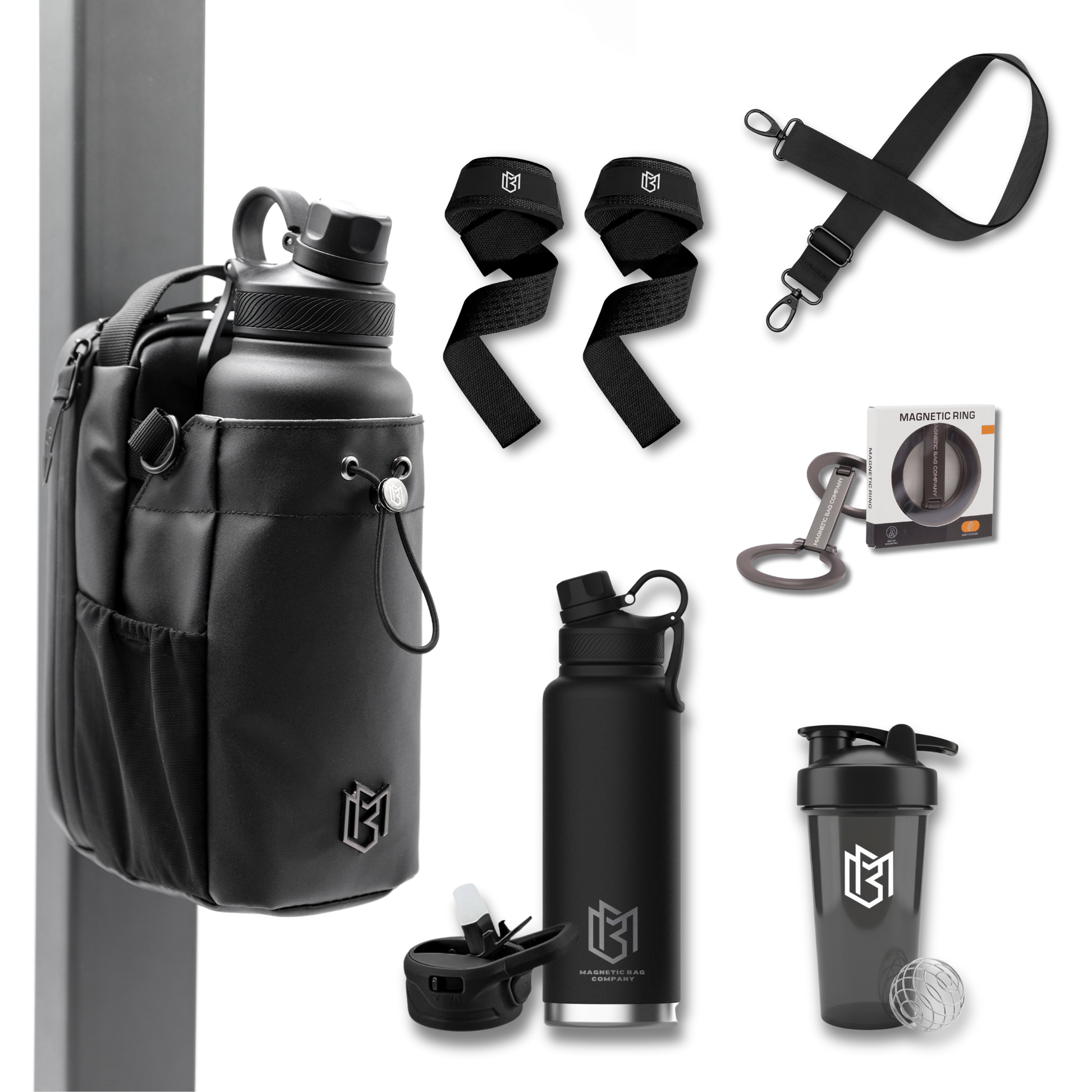 The Magnetic Bottle Bag is a uniquely designed bag that uses an integrated magnetic backing to attach to magnetized surfaces such as fitness equipment. It's perfect for keeping your essentials and bottle secure and easily accessible during workouts or on the go.