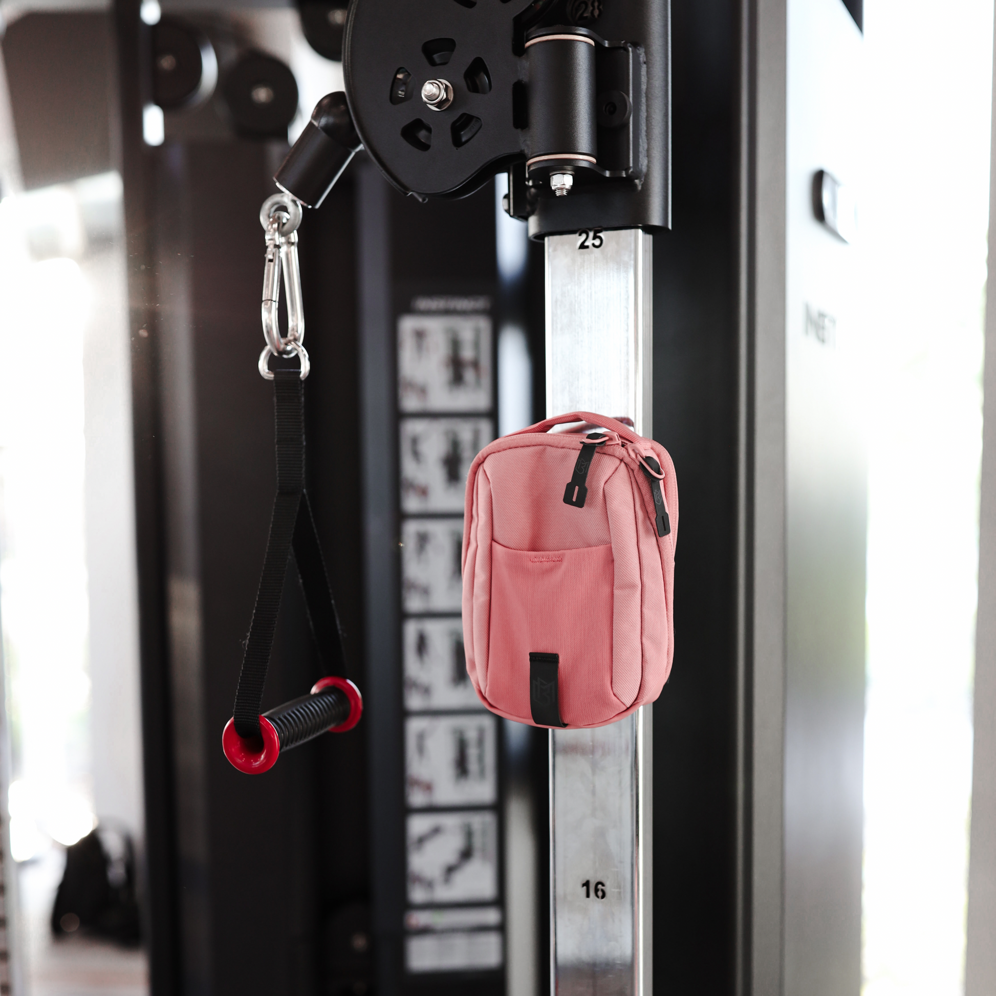 The Magnetic Crossbody is a uniquely designed bag that uses an integrated magnetic backing to attach to magnetized surfaces such as fitness equipment. It's perfect for keeping your essentials secure and easily accessible during workouts or on the go.