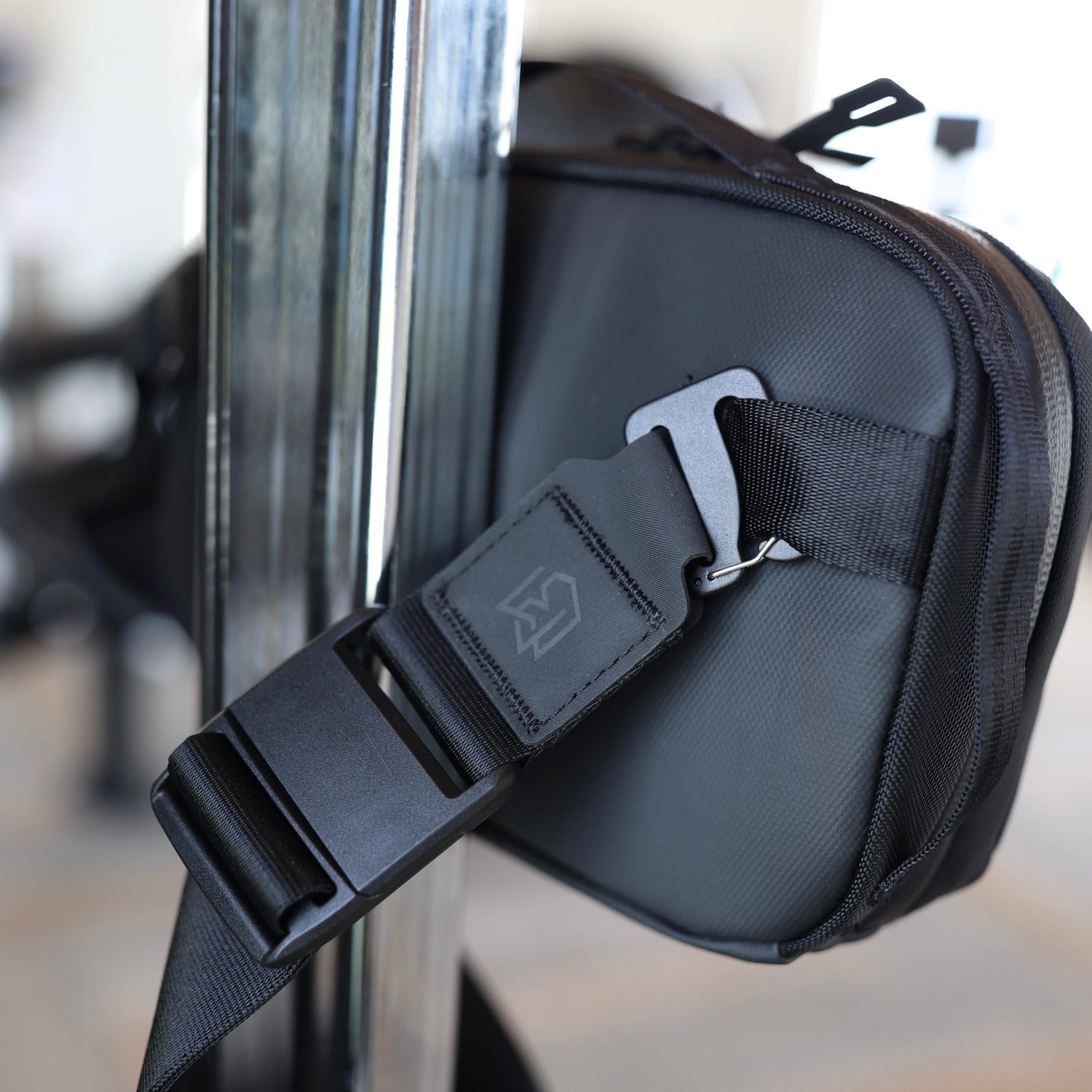 The Magnetic Crossbody is a uniquely designed bag that uses an integrated magnetic backing to attach to magnetized surfaces such as fitness equipment. It's perfect for keeping your essentials secure and easily accessible during workouts or on the go.